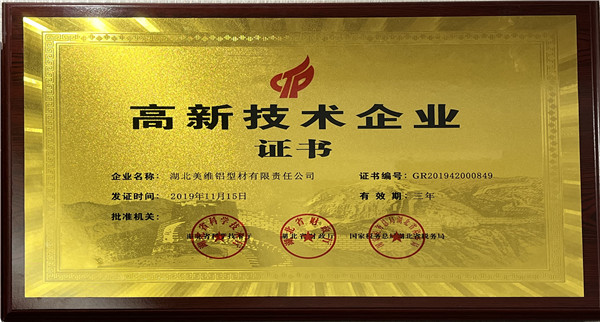 高新技术企业证书