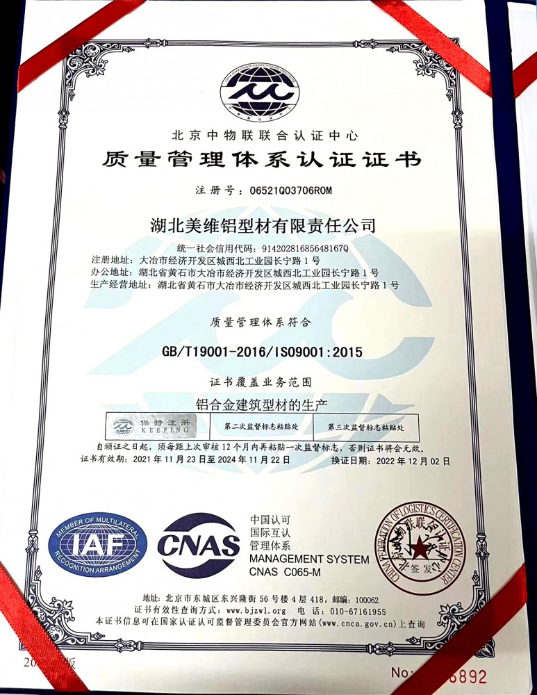 质量管理体系认证证书